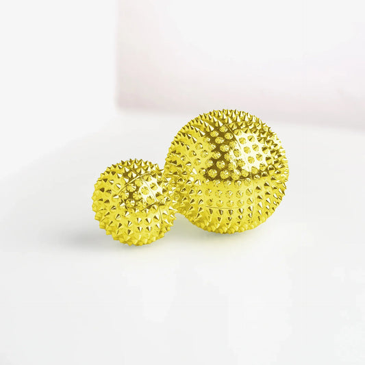 Entdecke unser Premium Akupressurball-Set mit 2 hochwertigen Igelbällen in den Größen S und M - perfekt für effektives Stressmanagement und gezielte Muskelentspannung. Diese therapeutischen Massagebälle mit auffälligem Metallic-Design kombinieren intensive Druckpunktmassage mit sensorischer Stimulation und eignen sich ideal zur Anspannungsreduktion, für Entspannungsübungen und als Achtsamkeitstool. Ein vielseitiges Wellness-Produkt für den Einsatz zu Hause, im Büro, bei der Physiotherapie oder als unterstützendes Element in der professionellen Behandlung.